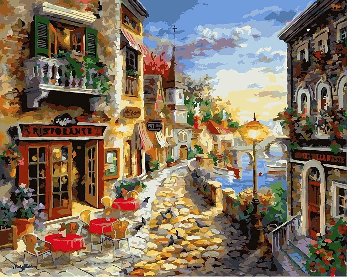 Schilderen Op Nummer - Steeg aan Meer - 40x50cm Afbeeldingsformaat - Paint By Number Volwassenen - DIY - Verven Op Nummer