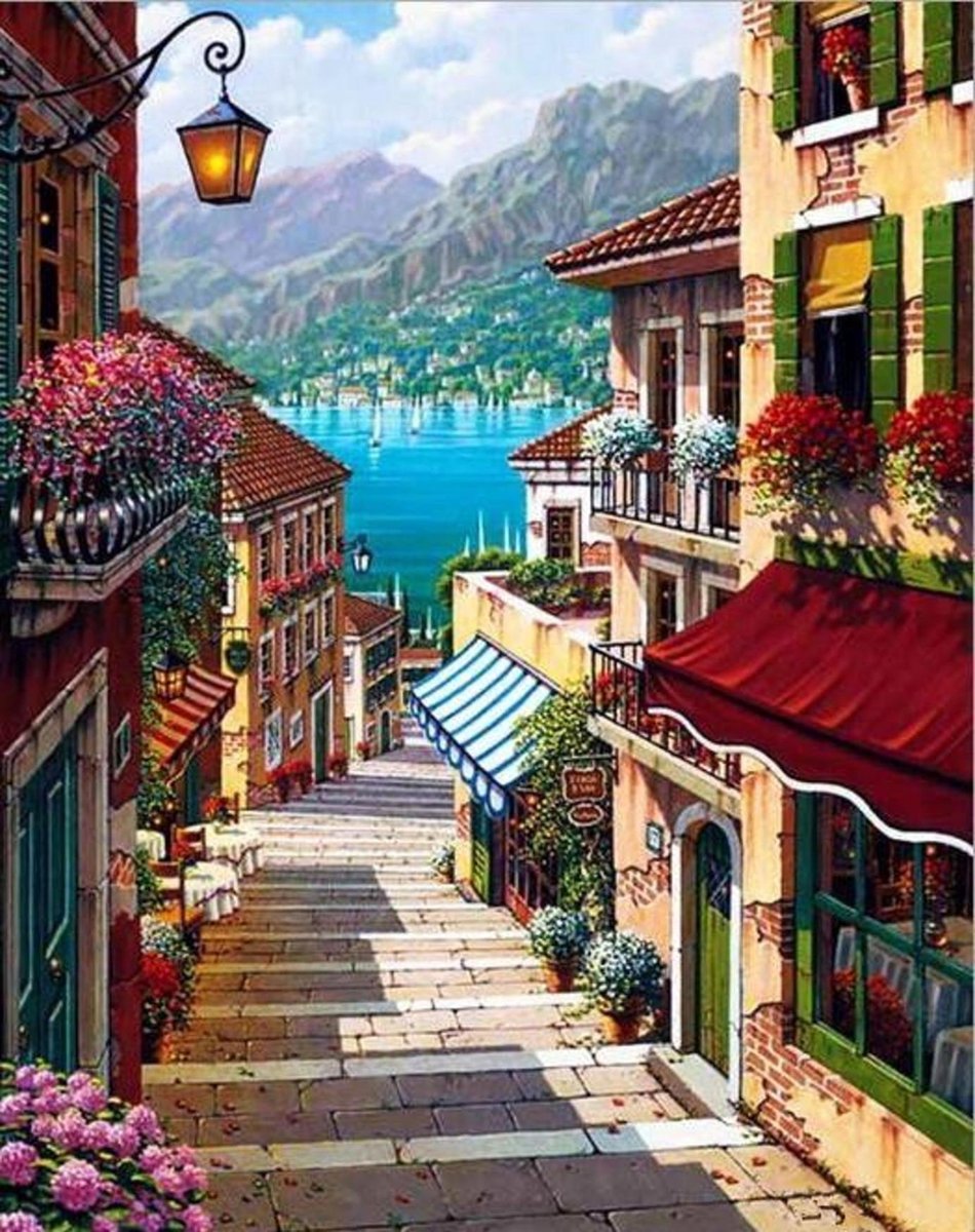 Schilderen Op Nummer - Steeg naar Meer- 40x50cm Afbeeldingsformaat - Paint By Number Volwassenen - DIY - Verven Op Nummer