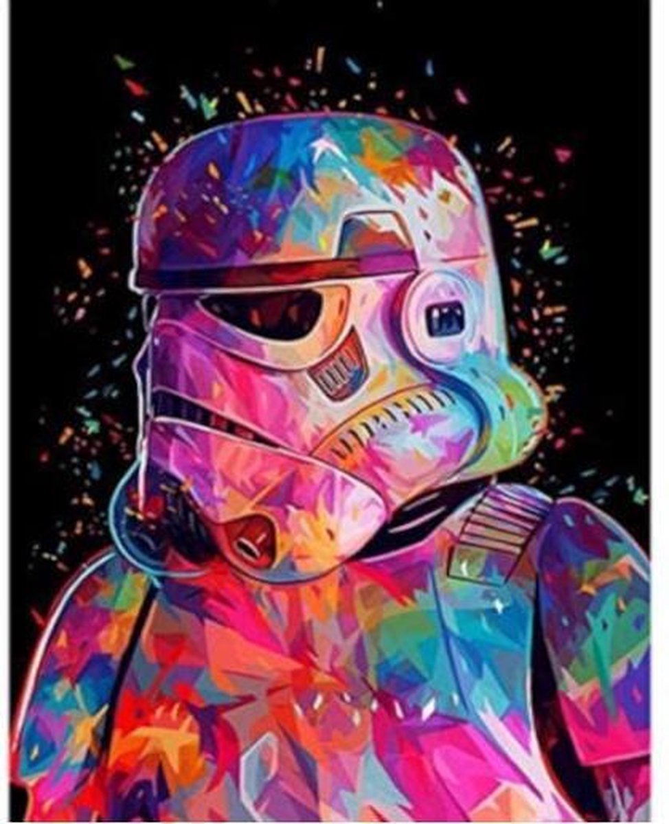 Schilderen op nummer is dé manier om even rustig te ontspannen. Met dit schildersdoek van een Star Wars Storm Trooper schilder je een ontzettend leuk stuk dat je bijvoorbeeld aan de muur kunt hangen. Moeilijkheidsgraad: 3/5. Zo werkt het Strijk eventueel de achterkant van het canvasdoek op een lage stand. Leg een theedoek ertussen voor extra bescherming. Elk vakje op het doek is genummerd. Elk nummer komt overeen met een nummer op de verfpotjes. Kies een nummer waarmee je wilt beginnen. Schilder de vakjes één voor één met de juiste kleur. Zodra je klaar bent (dan kan even duren) kun je het doek inlijsten of opspannen aan een houten frame en aan de muur hangen! Er is geen specifieke volgorde die je moet volgen om deze tekening af te kunnen maken. Dus wees creatief! Zet vooral je favoriete muziek aan en pak een kop thee/bakje koffie. Verpakkingsinhoud - schilderen op nummer Storm Trooper Star Wars Instructies Een set met 3 kwasten Genummerd canvasdoek Genummerde potjes acrylverf