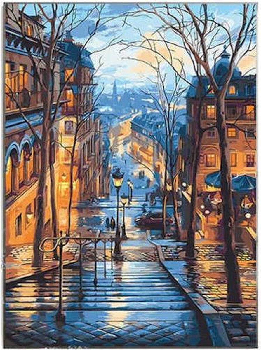 Schilderen op nummer is dé manier om even rustig te ontspannen. Met dit canvasdoek van een Straat in Parijs schilder je een ontzettend leuk stuk dat je bijvoorbeeld aan de muur kunt hangen. Moeilijkheidsgraad: 3/5. Zo werkt het Strijk eerst de achterkant van het canvasdoek op een lage stand. Leg een theedoek ertussen voor extra bescherming. Elk vakje op het doek is genummerd. Elk nummer komt overeen met een nummer op de verfpotjes. Kies een nummer waarmee je wilt beginnen. Schilder de vakjes één voor één met de juiste kleur. Zodra je klaar bent (dan kan even duren) kun je het doek inlijsten of opspannen aan een houten frame en aan de muur hangen! Er is geen specifieke volgorde die je moet volgen om deze tekening af te kunnen maken. Dus wees creatief! Zet vooral je favoriete muziek aan en pak een kop thee/bakje koffie. Verpakkingsinhoud Instructies Een set met kwasten Genummerd canvasdoek Genummerde potjes acrylverf Let op: frame niet inbegrepen.