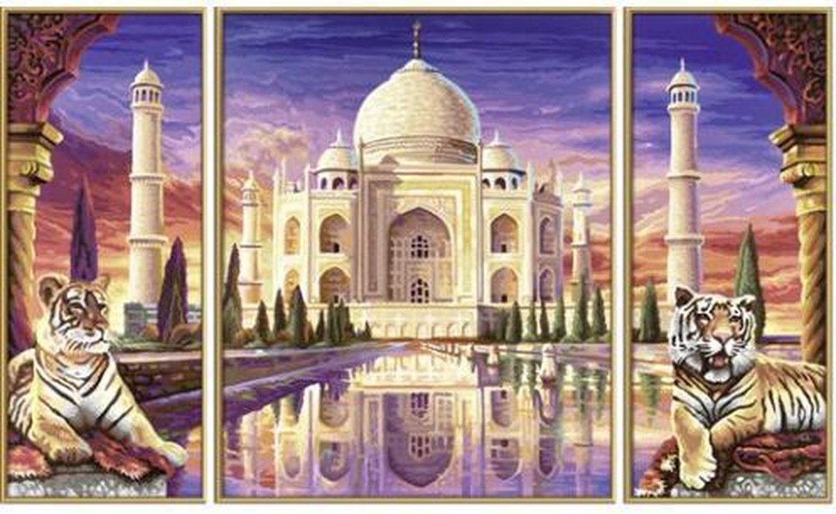 Ook jij kunt een kunstenaar zijn, dankzij deze Schilderen op nummer "Taj Mahal-set". MAL 609260435 Meesterklasse drieluik compleet pakket met acrylverf (mengen niet nodig) ondergrond & penseel exclusief schilderijlijst. Met de methode “Schilderen op nummer” kan iedereen mooie schilderijen maken als alle gecontureerde en genummerde vakjes met de kleuren met hetzelfde getal worden beschilderd. Meer dan 40 jaar geleden was SCHIPPER niet alleen de eerste Duitse producent die de uit de USA afkomstige schildertechniek naar Duitsland heeft ingevoerd, het is de firma uit Neurenberg ook gelukt dit schildersysteem op buitengewone wijze te perfectioneren. Het is op de schilderijen amper te zien dat zij volgens deze methode werden gemaakt. Kleine en grote hobbykunstenaars zijn daarom bijzonder trots op hun kleine kunstwerken. Met een passende lijst decoreren zij woningen of worden ook graag als cadeau gegeven. Met de methode “Schilderen op nummer” kan iedereen mooie schilderijen maken als