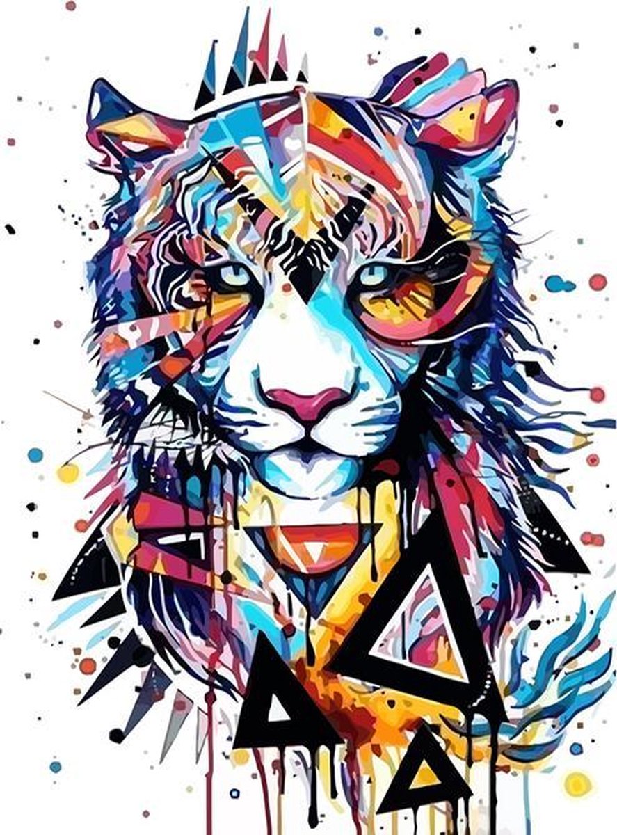 Schilderen op Nummer Tijger Abstract 40x50 met Frame Volwassenen & Kinderen - Kleuren op Nummer - Paint by Number - Hobbypainting.nl®