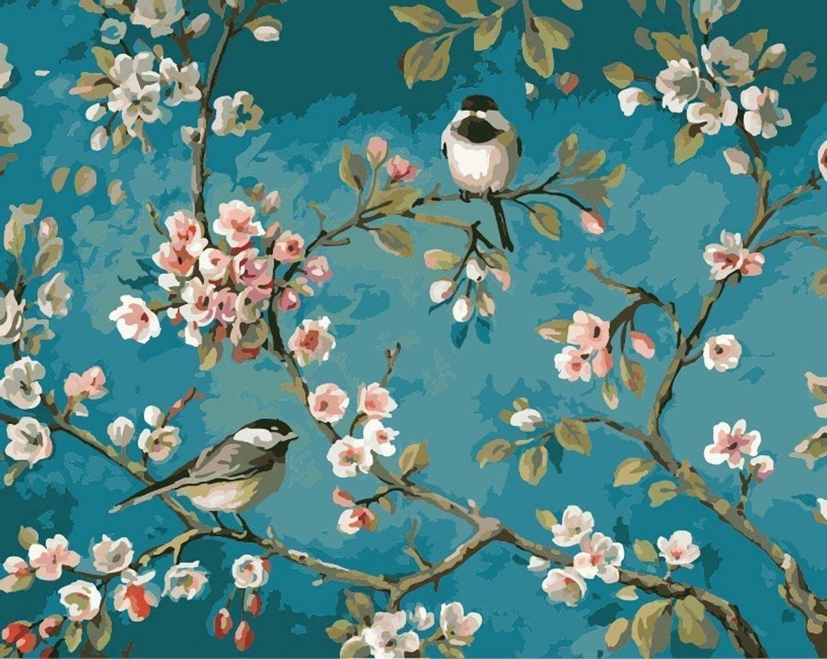 Schilderen op Nummer Volwassenen - 40x50 cm - Vogels - Van Gogh - Paint by Number - Hobby Pakket - Met 3 kwasten - Zonder lijst - Met ophanghaakjes