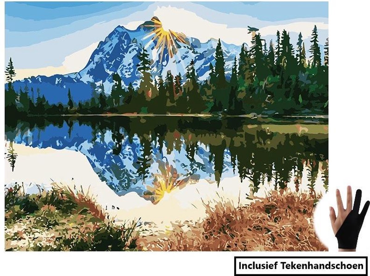 Schilderen Op Nummer Volwassenen Bergen Bos Rivier Landschap Natuur - 50x40 cm - Inclusief Tekenhandschoen - Paint By Number Volwassenen