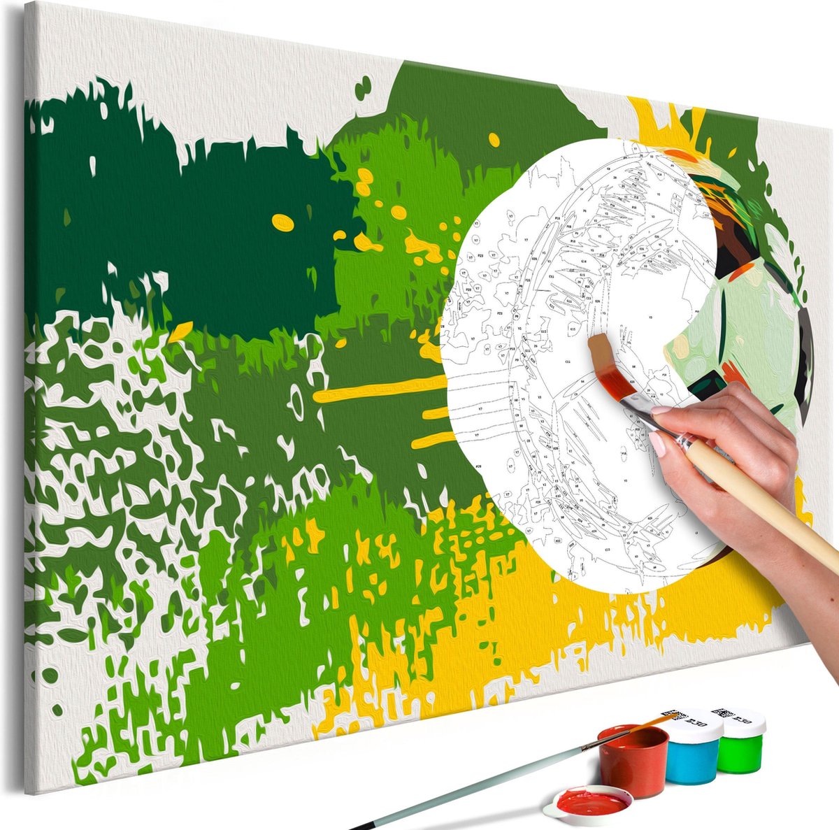 Ontwaak uw creativiteit Wilt u creatief ontspannen? Op zoek naar een origineel avontuur, waar u ook uw dierbaren kunt uitnodigen? Tegelijkertijd wordt u wakker van uw creativiteit en voelt u zich een echte kunstenaar. Niets is makkelijker ! Ontdek de meest originele hobby van dit jaar - schilderen op nummers . Een kleurrijke schilderij kit door nummers Football Emotions is een ongebruikelijk idee voor het besteden van vrije tijd. Schilderij kit door nummers Football Emotions is een activiteit voor mensen van alle leeftijden. Perfect voor amateur schilders! Dit schilderij zal perfect zijn als wandversiering. We presenteren een complete schilderkit voor volwassenen en ambitieuze kinderen ouder dan 12 jaar. De set bevat: Schemapatroonmet gekleurde velden - om uw kinderen te helpen schilderen 2 borstels met verschillende borsteldiktes Een set acrylverf in containers, speciaal geselecteerd voor het door u gekozen patroon. Diagram patroon met gekleurde velden - om u te helpen met