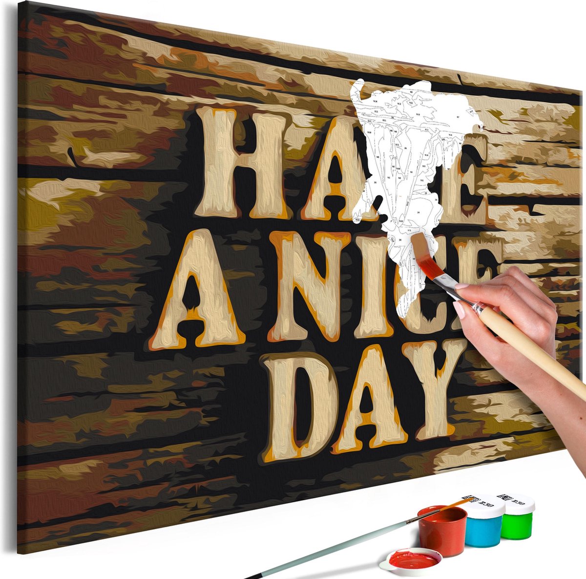 Ontwaak uw creativiteit Wilt u creatief ontspannen? Op zoek naar een origineel avontuur, waar u ook uw dierbaren kunt uitnodigen? Tegelijkertijd wordt u wakker van uw creativiteit en voelt u zich een echte kunstenaar. Niets is makkelijker ! Ontdek de meest originele hobby van dit jaar - schilderen op nummers . Een kleurrijke schilderij kit door nummers Have a Nice Day is een ongebruikelijk idee voor het besteden van vrije tijd. Schilderij kit door nummers Have a Nice Day is een activiteit voor mensen van alle leeftijden. Perfect voor amateur schilders! Dit schilderij zal perfect zijn als wandversiering. We presenteren een complete schilderkit voor volwassenen en ambitieuze kinderen ouder dan 12 jaar. De set bevat: Schemapatroonmet gekleurde velden - om uw kinderen te helpen schilderen 2 borstels met verschillende borsteldiktes Een set acrylverf in containers, speciaal geselecteerd voor het door u gekozen patroon. Diagram patroon met gekleurde velden - om u te helpen met schilderen