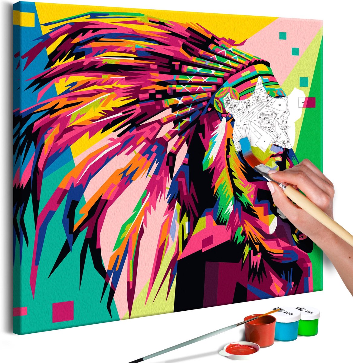 Ontwaak uw creativiteit Wilt u creatief ontspannen? Op zoek naar een origineel avontuur, waar u ook uw dierbaren kunt uitnodigen? Tegelijkertijd wordt u wakker van uw creativiteit en voelt u zich een echte kunstenaar. Niets is makkelijker ! Ontdek de meest originele hobby van dit jaar - schilderen op nummers . Een kleurrijke schilderij kit door nummers Native American (Plume) is een ongebruikelijk idee voor het besteden van vrije tijd. Schilderij kit door nummers Native American (Plume) is een activiteit voor mensen van alle leeftijden. Perfect voor amateur schilders! Dit schilderij zal perfect zijn als wandversiering. We presenteren een complete schilderkit voor volwassenen en ambitieuze kinderen ouder dan 12 jaar. De set bevat: Schemapatroonmet gekleurde velden - om uw kinderen te helpen schilderen 2 borstels met verschillende borsteldiktes Een set acrylverf in containers, speciaal geselecteerd voor het door u gekozen patroon. Diagram patroon met gekleurde velden - om u te helpen