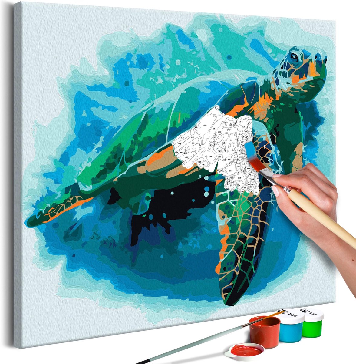 Ontwaak uw creativiteit Wilt u creatief ontspannen? Op zoek naar een origineel avontuur, waar u ook uw dierbaren kunt uitnodigen? Tegelijkertijd wordt u wakker van uw creativiteit en voelt u zich een echte kunstenaar. Niets is makkelijker ! Ontdek de meest originele hobby van dit jaar - schilderen op nummers . Een kleurrijke schilderij kit door nummers Turtle is een ongebruikelijk idee voor het besteden van vrije tijd. Schilderij kit door nummers Turtle is een activiteit voor mensen van alle leeftijden. Perfect voor amateur schilders! Dit schilderij zal perfect zijn als wandversiering. We presenteren een complete schilderkit voor volwassenen en ambitieuze kinderen ouder dan 12 jaar. De set bevat: Schemapatroonmet gekleurde velden - om uw kinderen te helpen schilderen 2 borstels met verschillende borsteldiktes Een set acrylverf in containers, speciaal geselecteerd voor het door u gekozen patroon. Diagram patroon met gekleurde velden - om u te helpen met schilderen Voor lichaam en