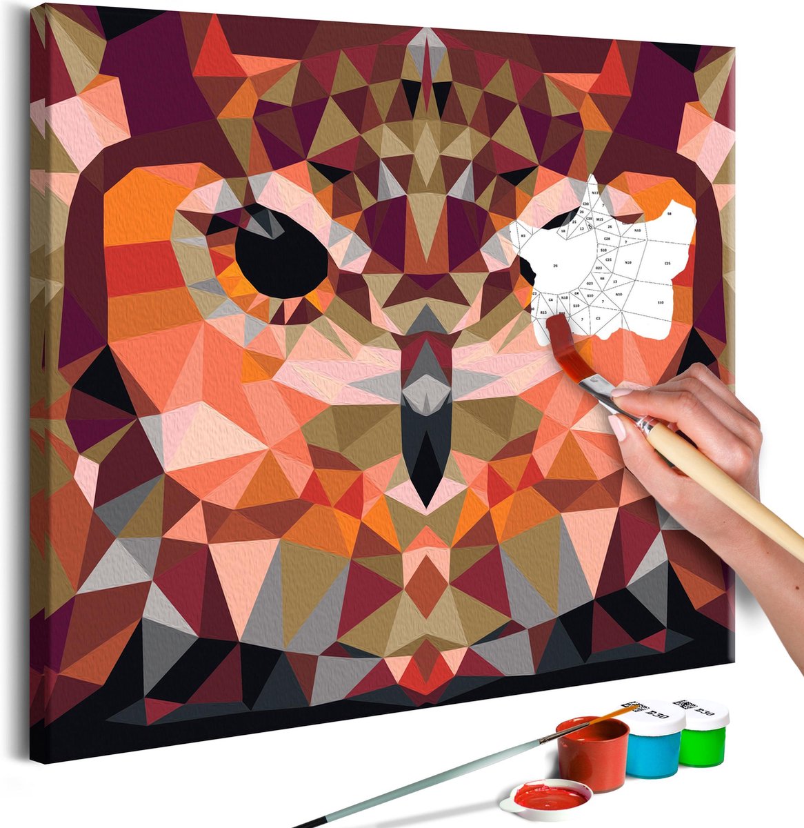 Ontwaak uw creativiteit Wilt u creatief ontspannen? Op zoek naar een origineel avontuur, waar u ook uw dierbaren kunt uitnodigen? Tegelijkertijd wordt u wakker van uw creativiteit en voelt u zich een echte kunstenaar. Niets is makkelijker ! Ontdek de meest originele hobby van dit jaar - schilderen op nummers . Een kleurrijke schilderij kit door nummers Owl (Geometrical) is een ongebruikelijk idee voor het besteden van vrije tijd. Schilderij kit door nummers Owl (Geometrical) is een activiteit voor mensen van alle leeftijden. Perfect voor amateur schilders! Dit schilderij zal perfect zijn als wandversiering. We presenteren een complete schilderkit voor volwassenen en ambitieuze kinderen ouder dan 12 jaar. De set bevat: Schemapatroonmet gekleurde velden - om uw kinderen te helpen schilderen 2 borstels met verschillende borsteldiktes Een set acrylverf in containers, speciaal geselecteerd voor het door u gekozen patroon. Diagram patroon met gekleurde velden - om u te helpen met