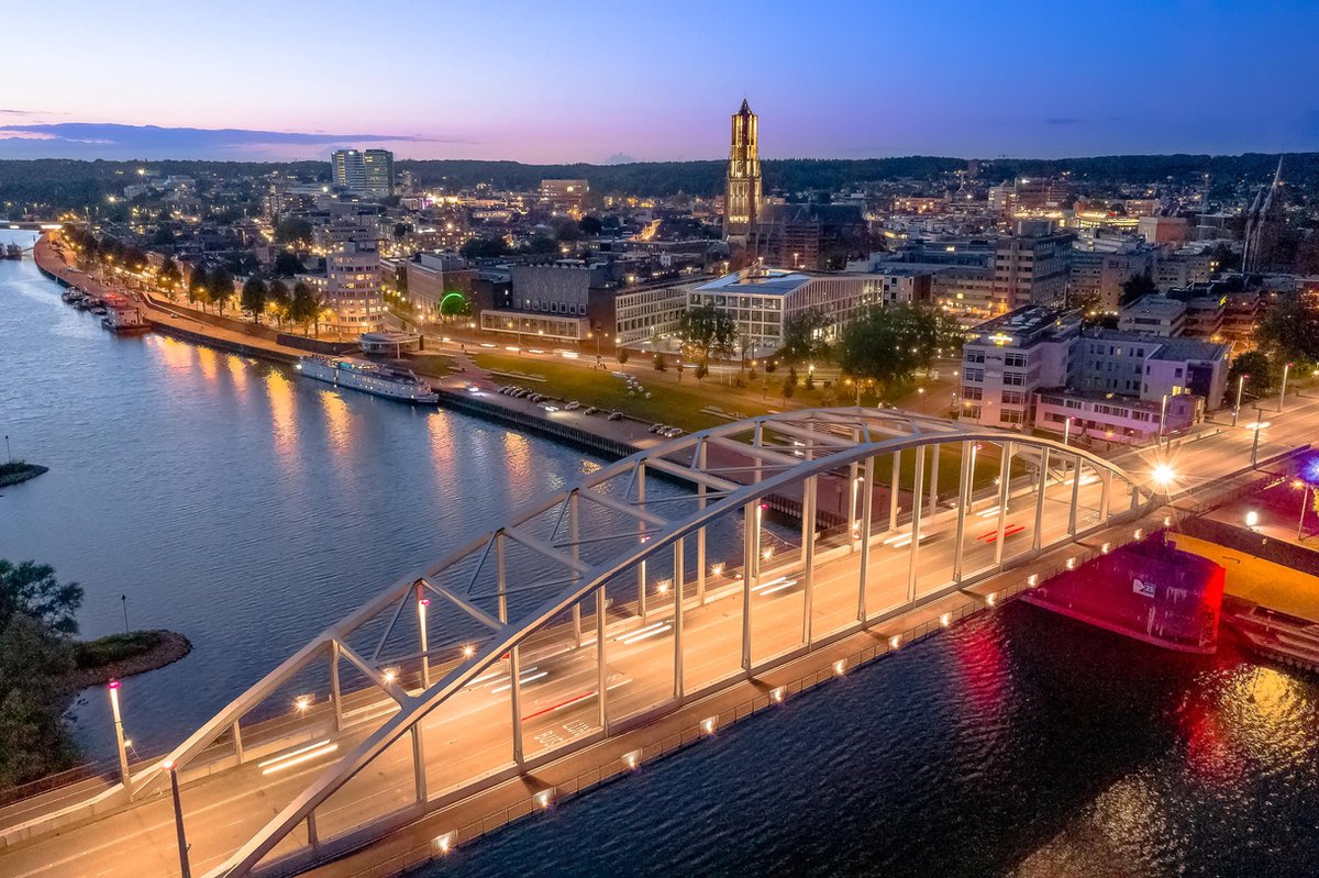 Schilderen Op Nummer Volwassenen - Do It Yourself Paintings - A Bridge Too Far - Skyline - Brug - Gebouwen - Stad - Water - Rijn - Nederland - 40x50 cm - Canvas