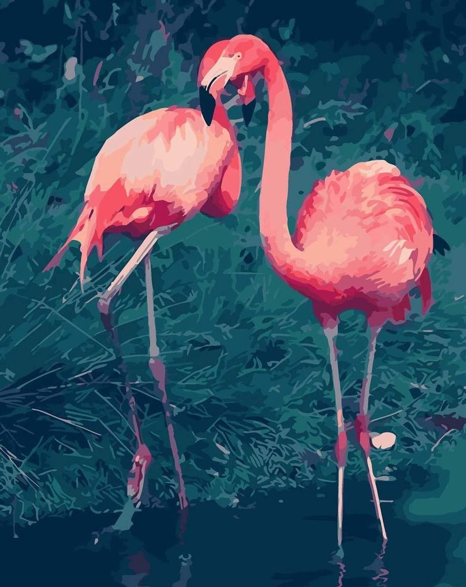 Schilderen Op Nummer Volwassenen - Do It Yourself Paintings - Flamingo - Dieren - Kleurrijk - Landschap - 40x50 cm - Canvas