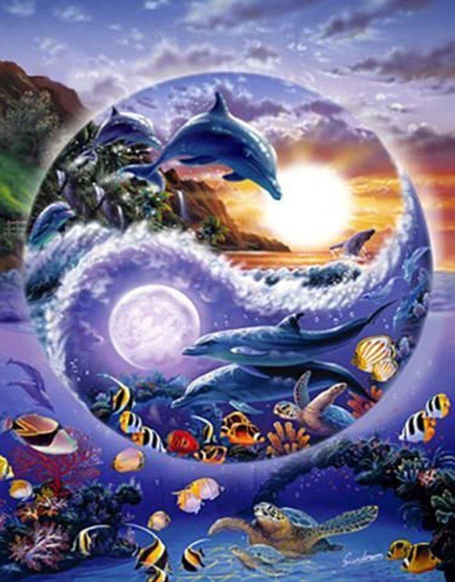 ? Tevredenheidsgarantie ? Vandaag Besteld Morgen In Huis ? Top Kwaliteit ? Beste prijs Ontdek je graag keer op keer de creatieve zijde van jezelf? En ben je benieuwd tot welke prachtige schilderijen dit kan leiden? Dan is schilderen op nummer echt iets voor jou! Iedereen is in z’n vrije tijd op zoek naar nieuwe hobby’s. Het vinden van leuke dingen om te doen is niet altijd even makkelijk. Maar hetgeen wat keer op keer een absolute schot in de roos blijkt te zijn, is schilderen op nummer. Met deze innovatieve manier van schilderen ben ook jij in staat om een kunstwerk te creëren dat niet onderdoet voor professionele schilders. Bovendien werkt het zeer ontspannend en levert het een heerlijk gevoel op wanneer je je eindresultaat bereikt. Dit Dolfijn Yin en Yang schilderij van 40 x 50 centimeter valt bij veel mensen erg in de smaak. In potentie een unieke creatie waar de kwaliteit vanaf spat. Hoe werkt schilderen op nummer precies? Op het doek is een bepaalde afbeelding zichtbaar met