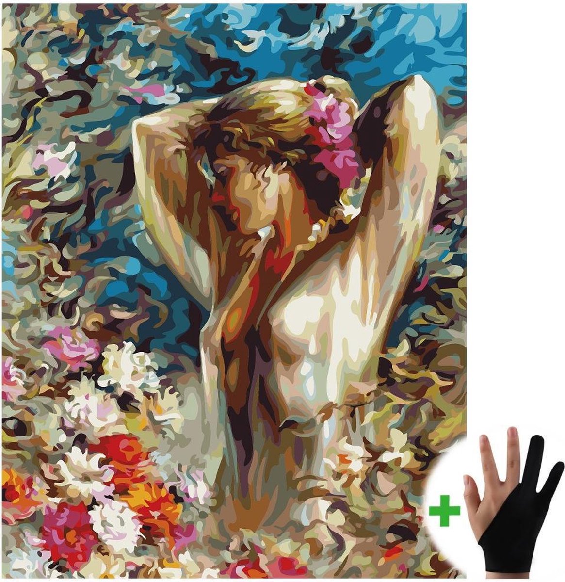 Schilderen Op Nummer Volwassenen Erotische Dame In Bloemenveld – 40x50 cm - Inclusief Tekenhandschoen - Paint By Number Volwassenen