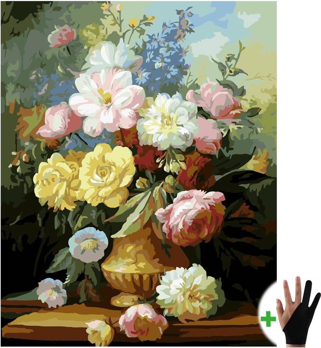 Schilderen Op Nummer Volwassenen Gekleurde Bloemen In Vaas Boeket – 40x50 cm - Inclusief Tekenhandschoen - Paint By Number Volwassenen