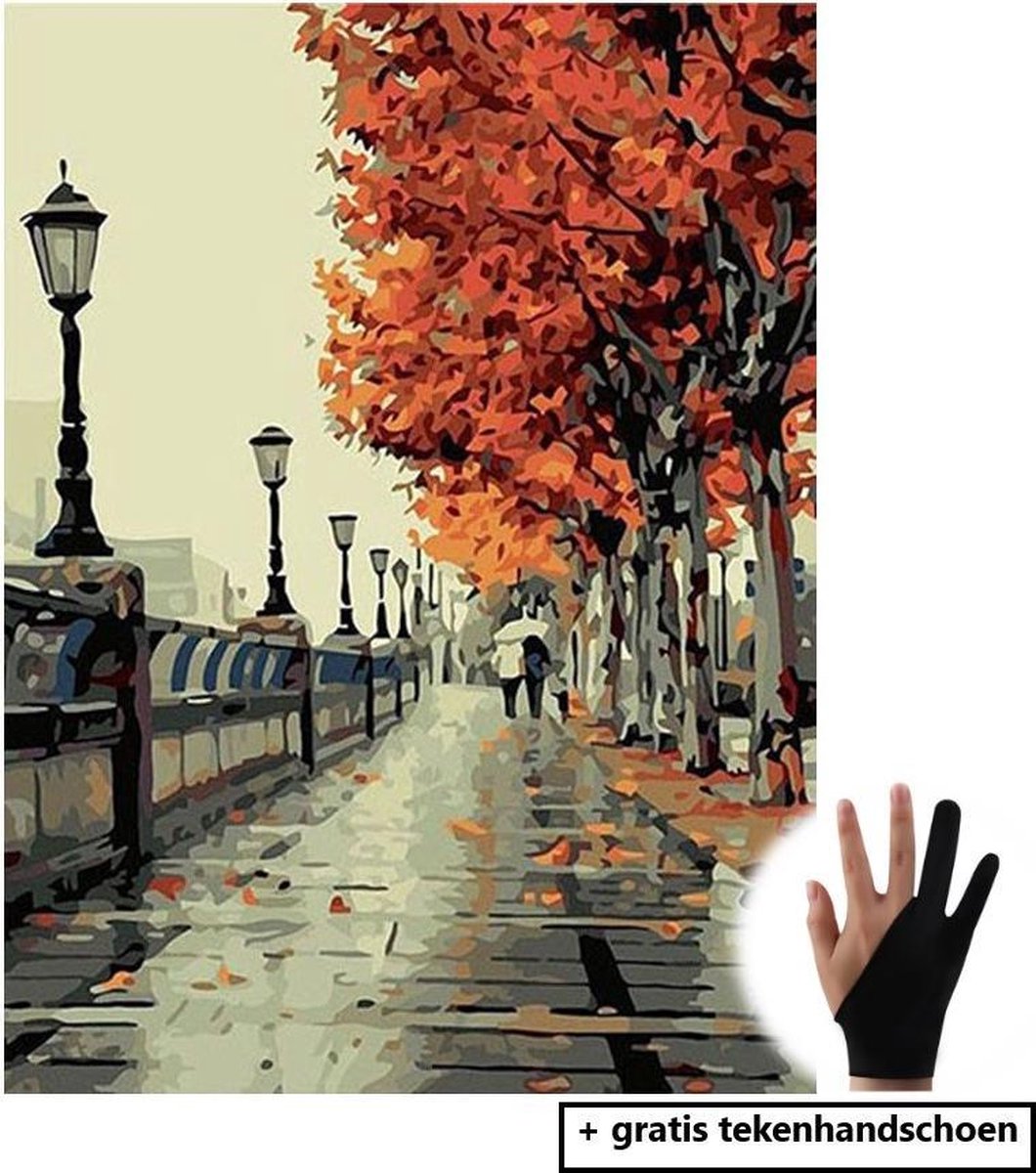Schilderen Op Nummer Volwassenen Herfst Natuur Park – 40x50 cm - Inclusief Tekenhandschoen - Paint By Number Volwassenen