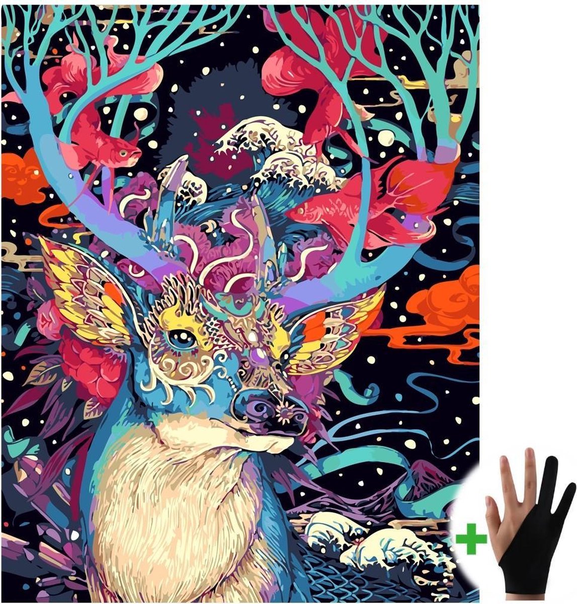 Schilderen Op Nummer Volwassenen Hert Kleurrijk Dieren – 40x50 cm - Inclusief Tekenhandschoen - Paint By Number Volwassenen