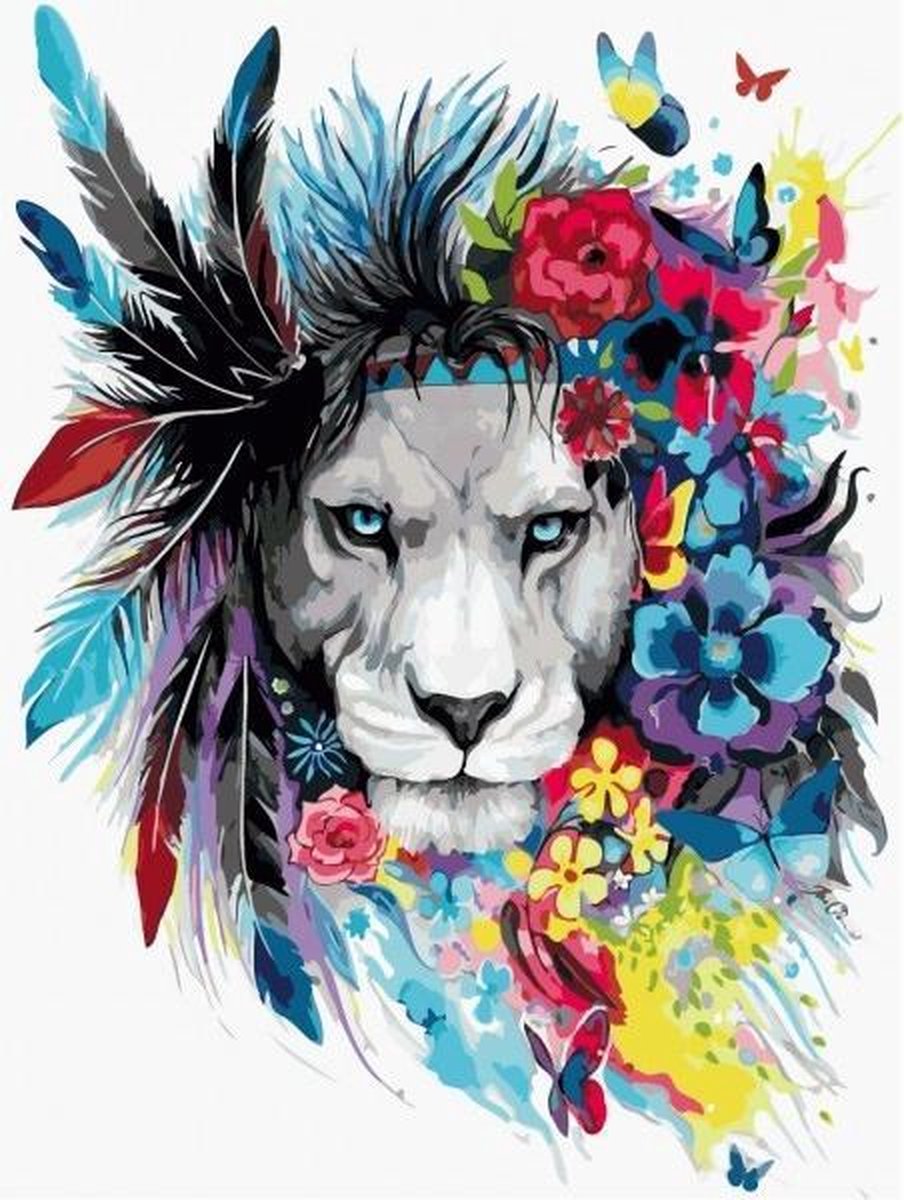 Schilderen Op Nummer Volwassenen Leeuw Dieren - Met Frame - 50x40 cm - Paint By Number Volwassenen