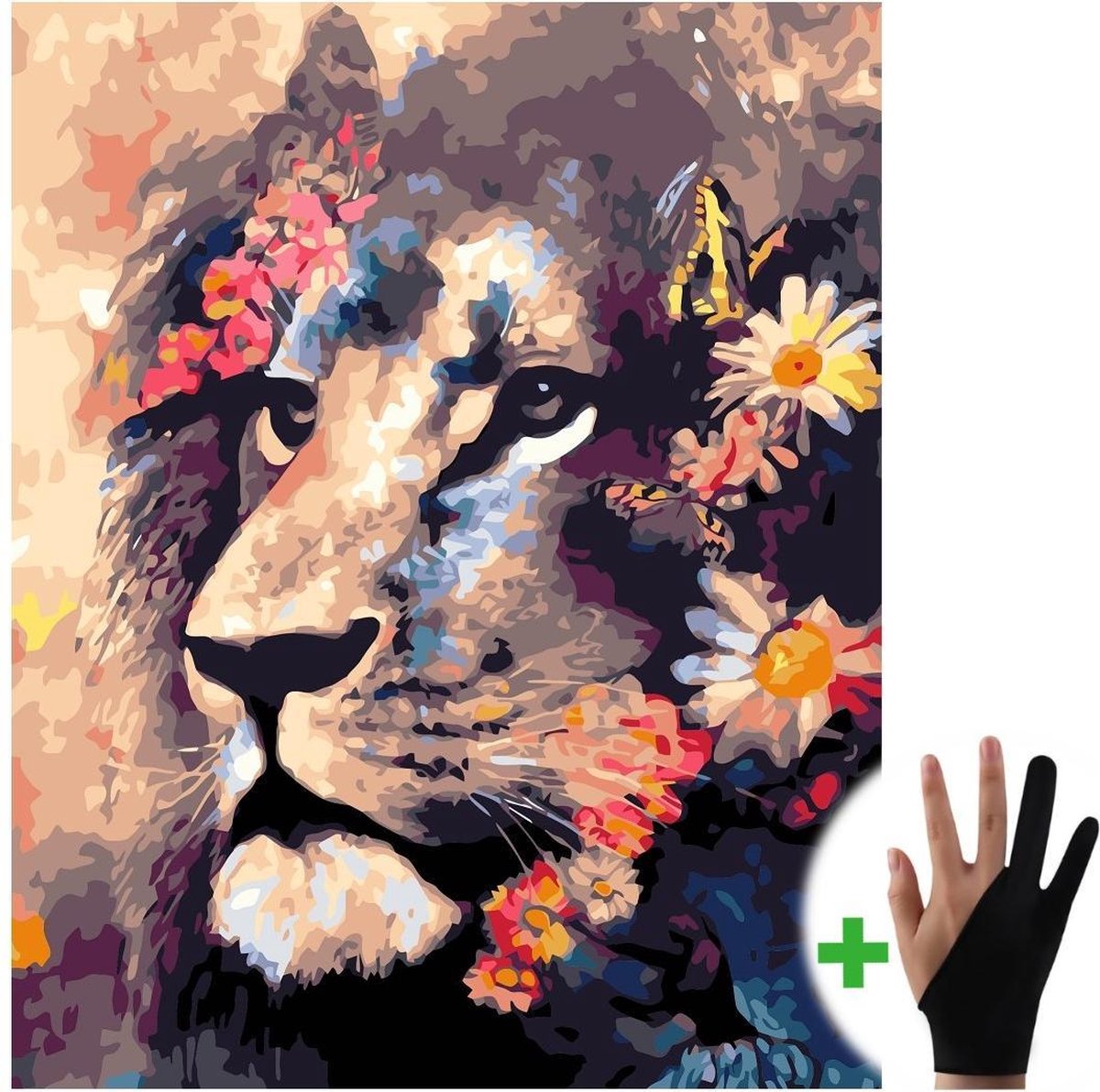 Schilderen Op Nummer Volwassenen Leeuw Met Bloemen Dieren – 40x50 cm - Inclusief Tekenhandschoen - Paint By Number Volwassenen