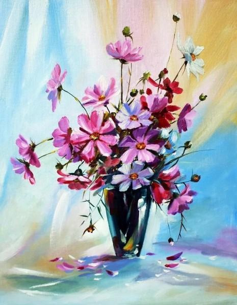 Schilderen Op Nummer Volwassenen - Met Frame - Paint By Number - Hobby - Bloemen - Vaas met roze bloemen 30x40 cm
