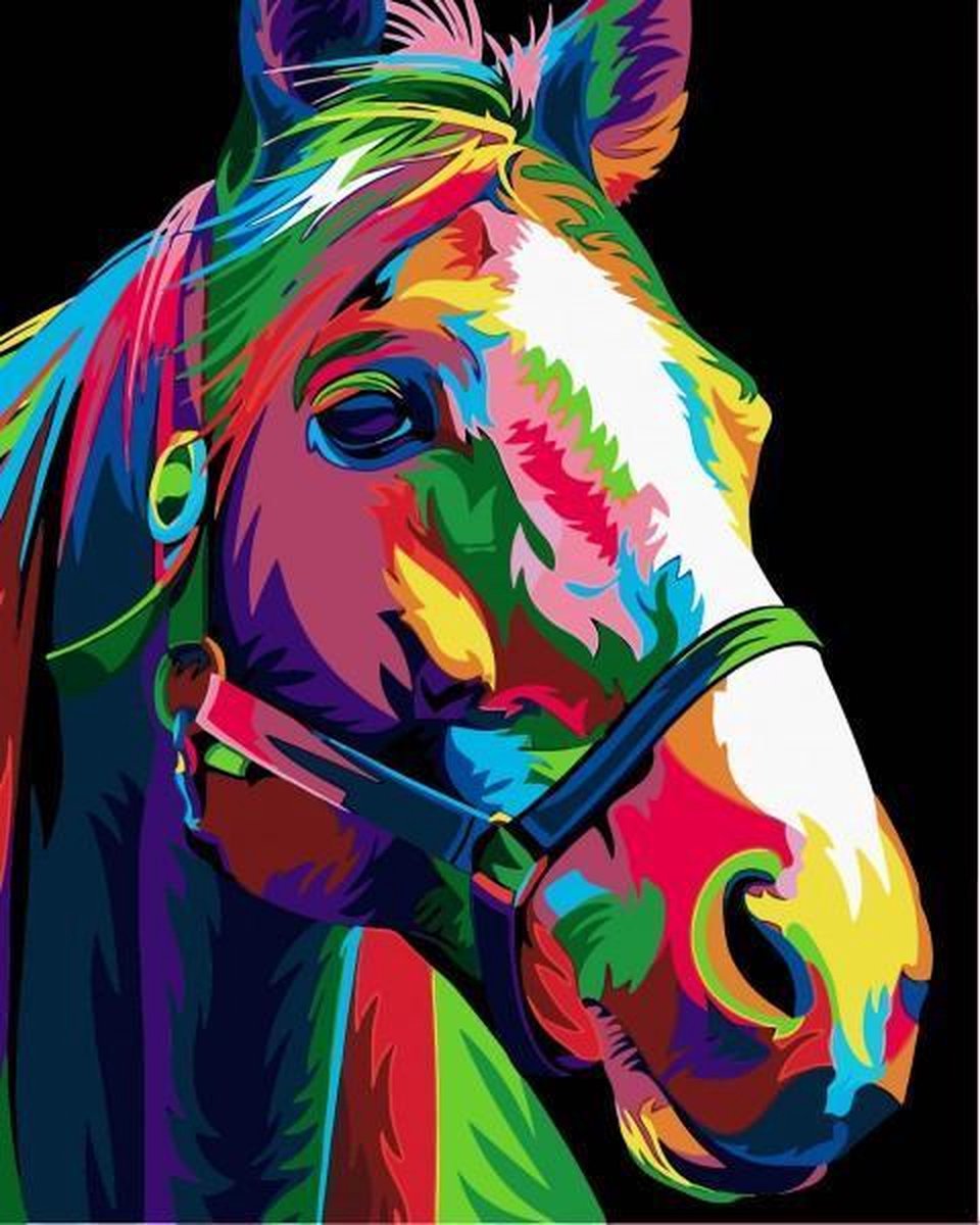 Schilderen Op Nummer Volwassenen - Met Frame - Paint By Number - Hobby - Dieren - Kleurrijk Paard 50x40cm