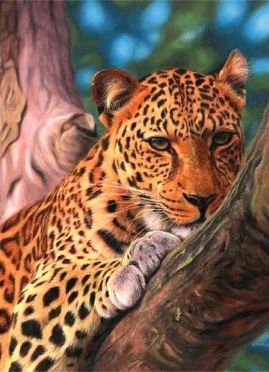 Schilderen Op Nummer Volwassenen - Met Frame - Paint By Number - Hobby - Dieren - Luipaard op tak 30x40 cm