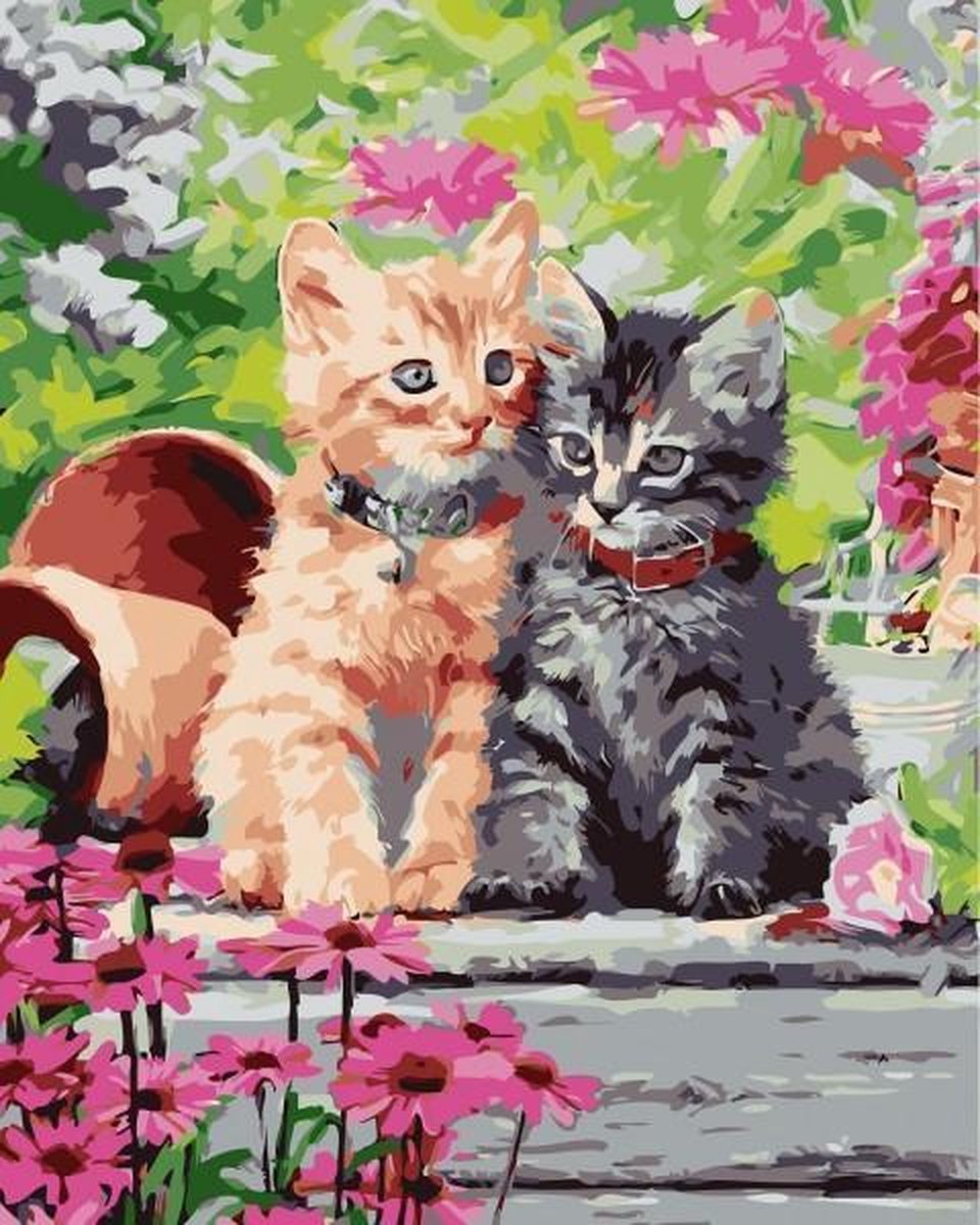 Schilderen Op Nummer Volwassenen - Met Frame - Paint By Number - Hobby - Dieren - Rode en grijze kitten 50x40cm