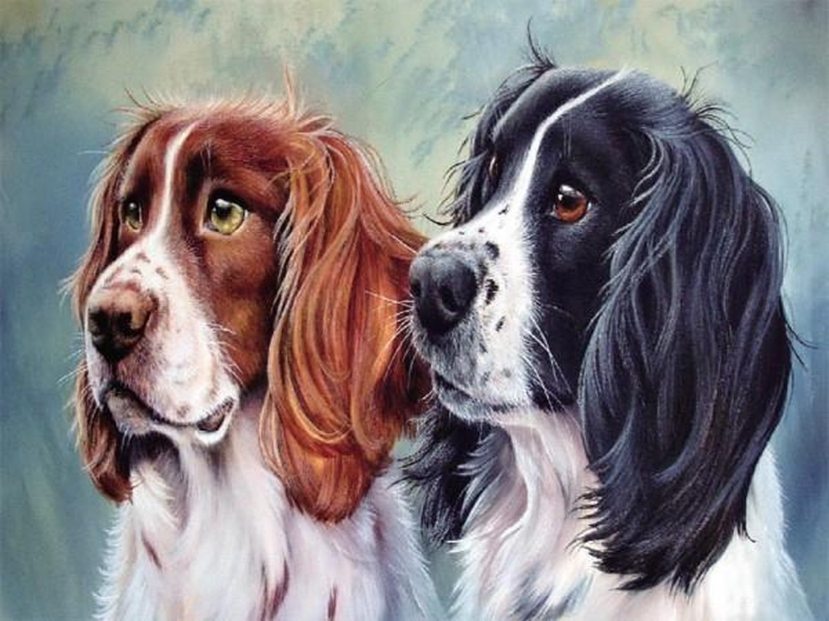 Schilderen Op Nummer Volwassenen - Met Frame - Paint By Number - Hobby - Dieren - Twee Honden 30x40 cm