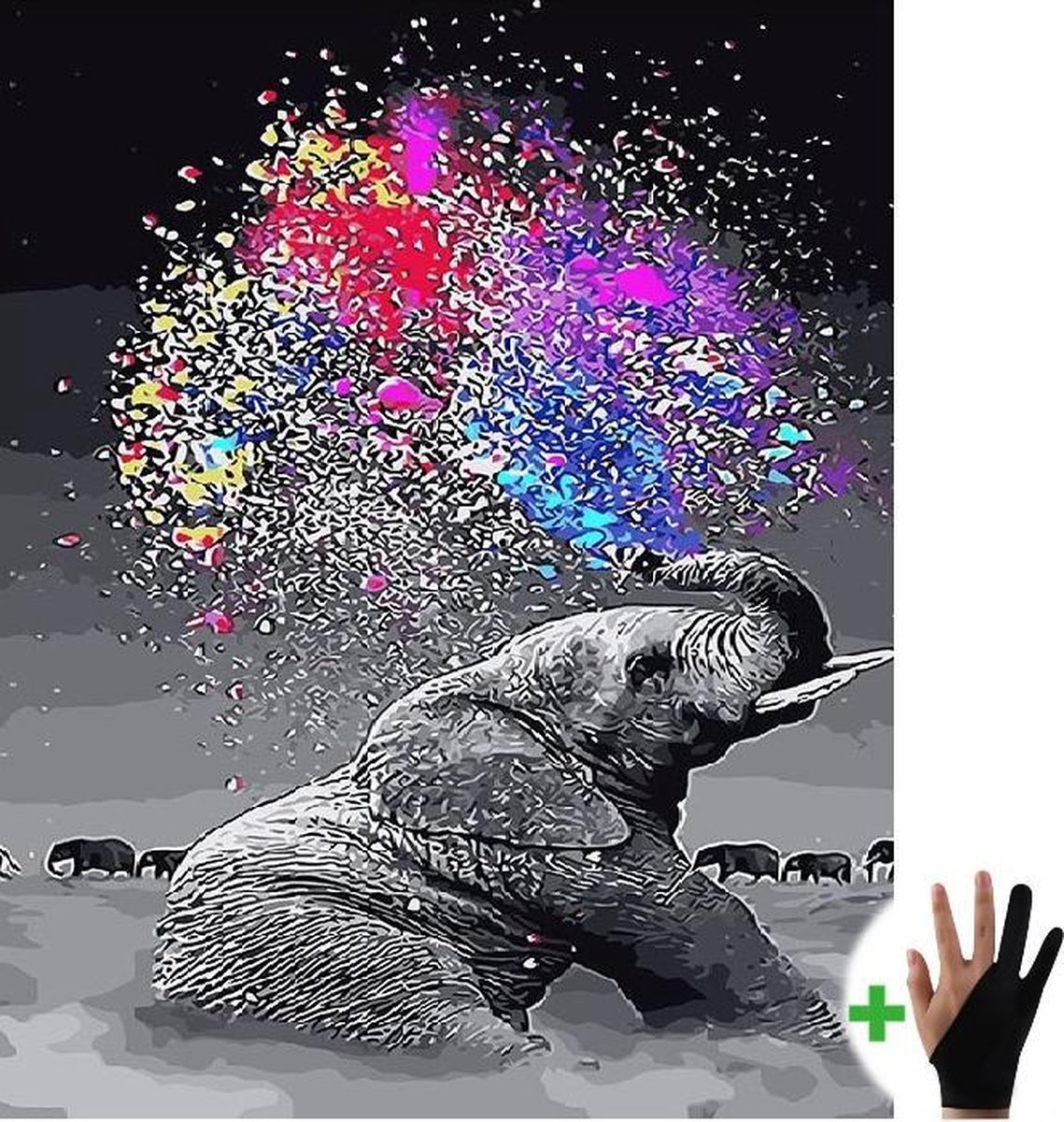 Schilderen Op Nummer Volwassenen Olifant Met Gekleurde Verf – 40x50 cm - Inclusief Tekenhandschoen - Paint By Number Volwassenen