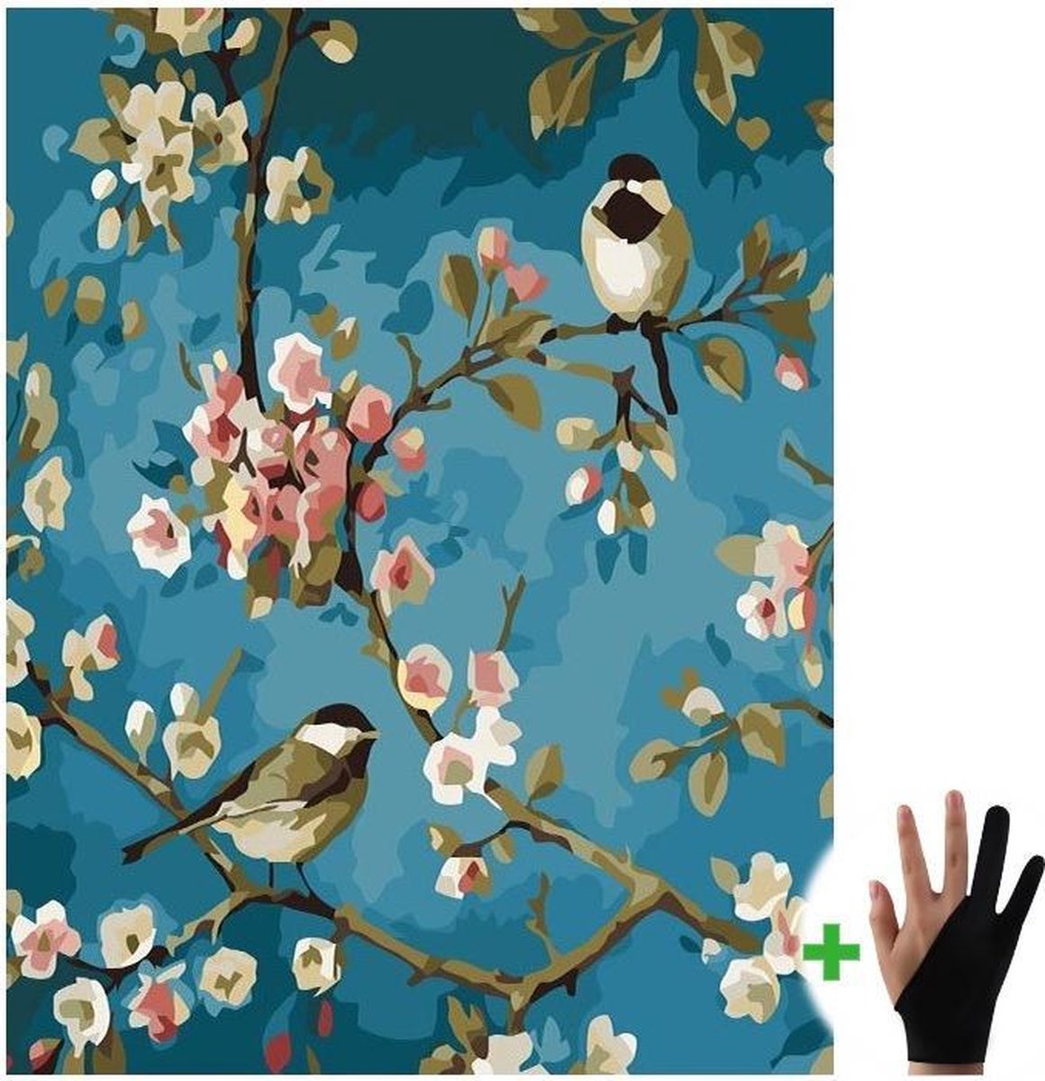 Schilderen Op Nummer Volwassenen Vogels Bloemen Natuur Dieren - 40x50 cm - Inclusief Tekenhandschoen - Paint By Number Volwassenen
