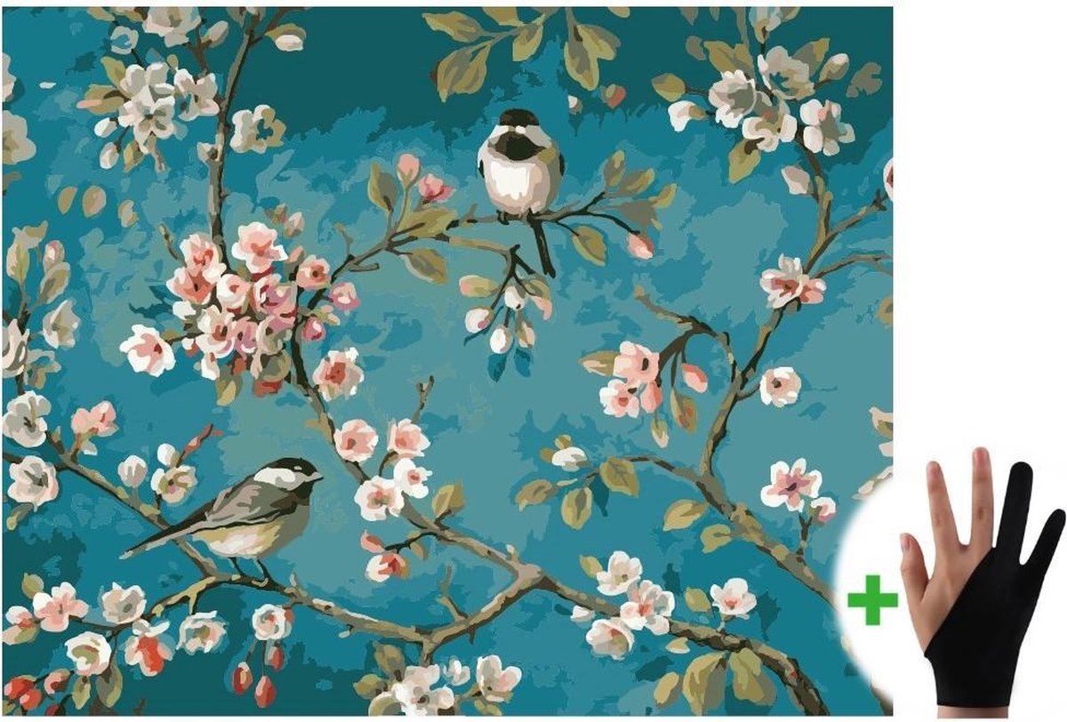 Schilderen Op Nummer Volwassenen Vogels Bloemen Natuur Dieren - 50x40 cm - Inclusief Tekenhandschoen - Paint By Number Volwassenen