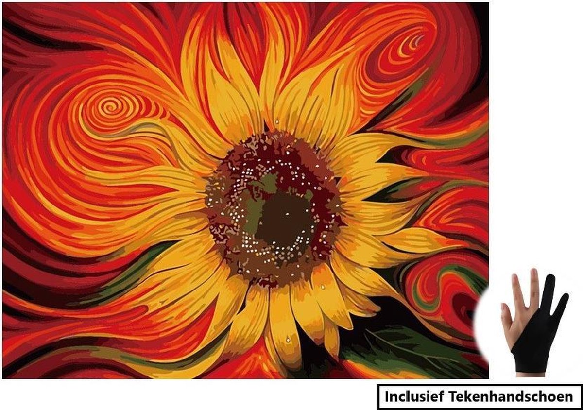Schilderen Op Nummer Volwassenen Zonnebloem Bloem – 50x40 cm - Inclusief Tekenhandschoen - Paint By Number Volwassenen