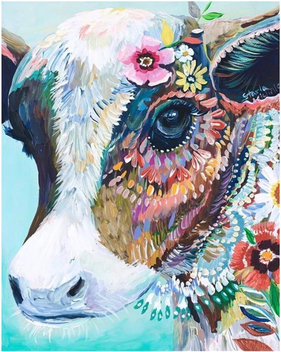 Schilderen op nummer voor volwassenen | Canvas op Frame / Doek op Frame 40 x 50 cm groot | Koe | Dier | Compleet Hobby Pakket | Acryl verf + verfkwasten | DIY schilderij | Paint by numbers | Cadeauset verf op nummers | Valentijn | Valentijnsdag