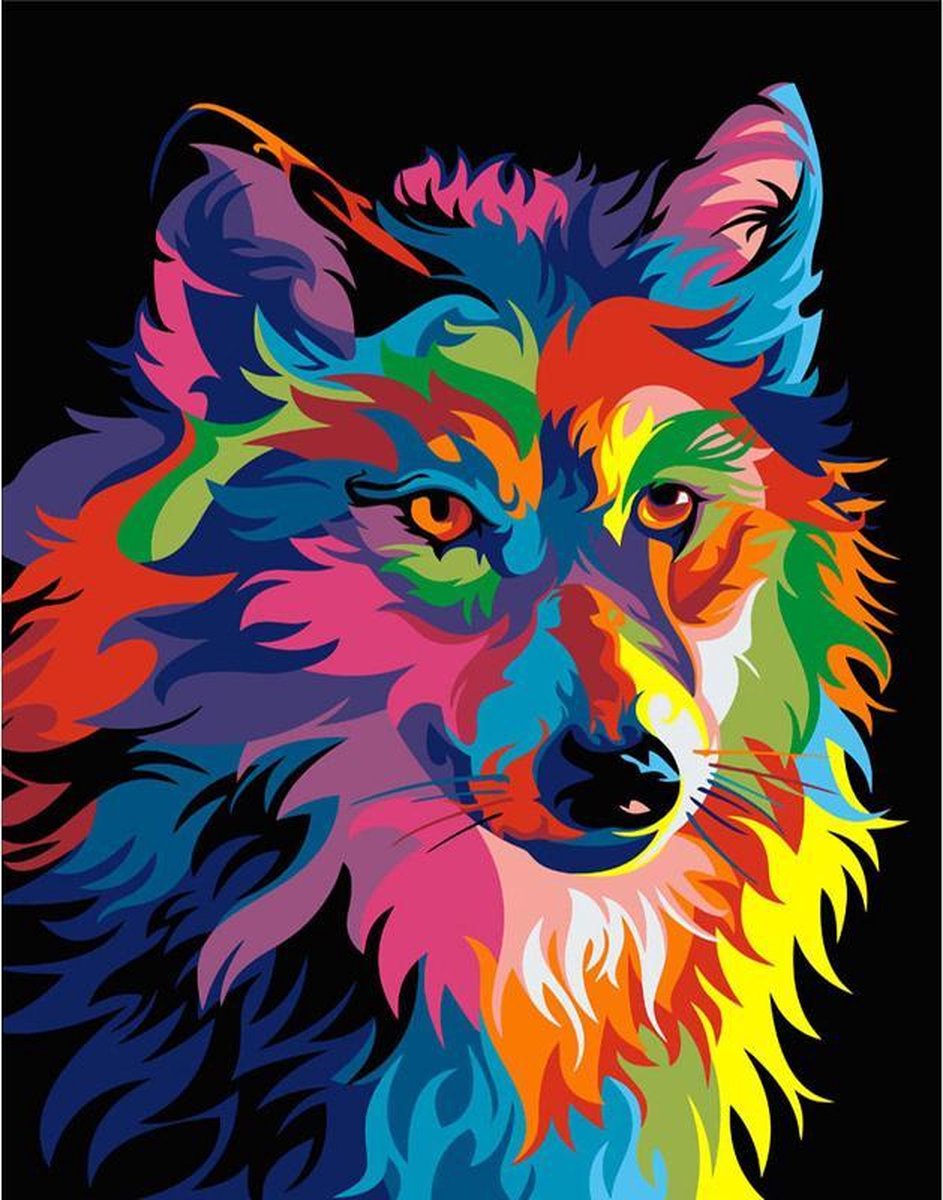 Schilderen Op Nummer Voor Volwassenen - Kleurrijke Wolf - 40x50 cm
