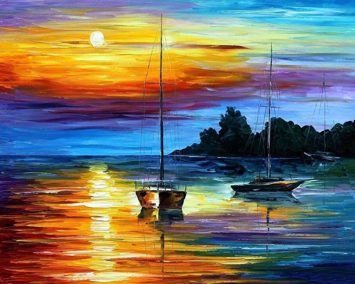 Schilderen op Nummer voor Volwassenen - L'art pour l'art - Verven - Opgerold Doek - 40x50 cm - 24 kleuren - Bootjes, Zonsondergang