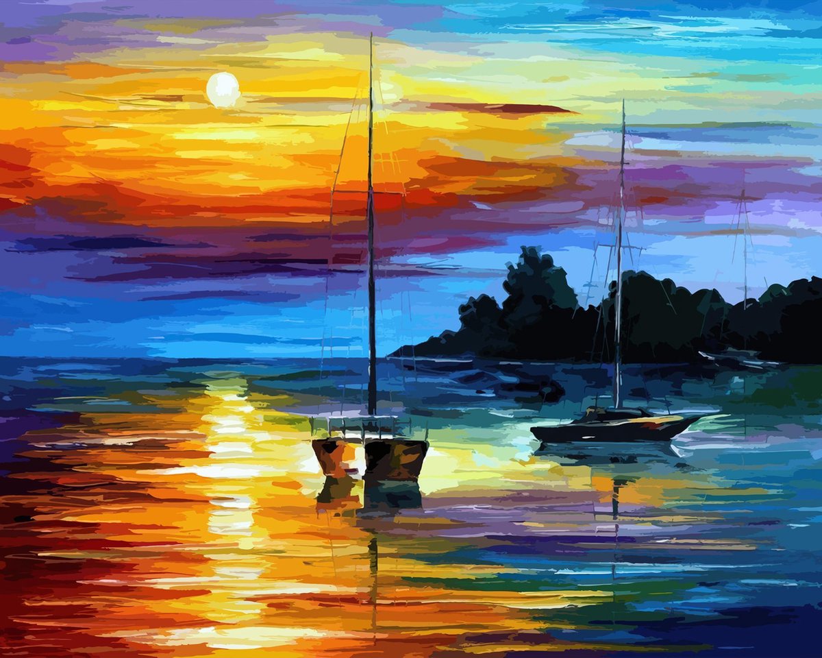 Schilderen op Nummer voor Volwassenen - L'art pour l'art - Verven - Opgespannen op Frame - 40x50cm - 24 kleuren - Bootjes, zonsondergang