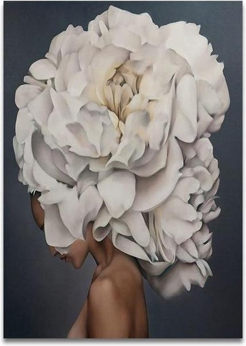 Schilderen Op Nummer Voor Volwassenen - Vrouw Met Witte Bloemen - 40x50 cm