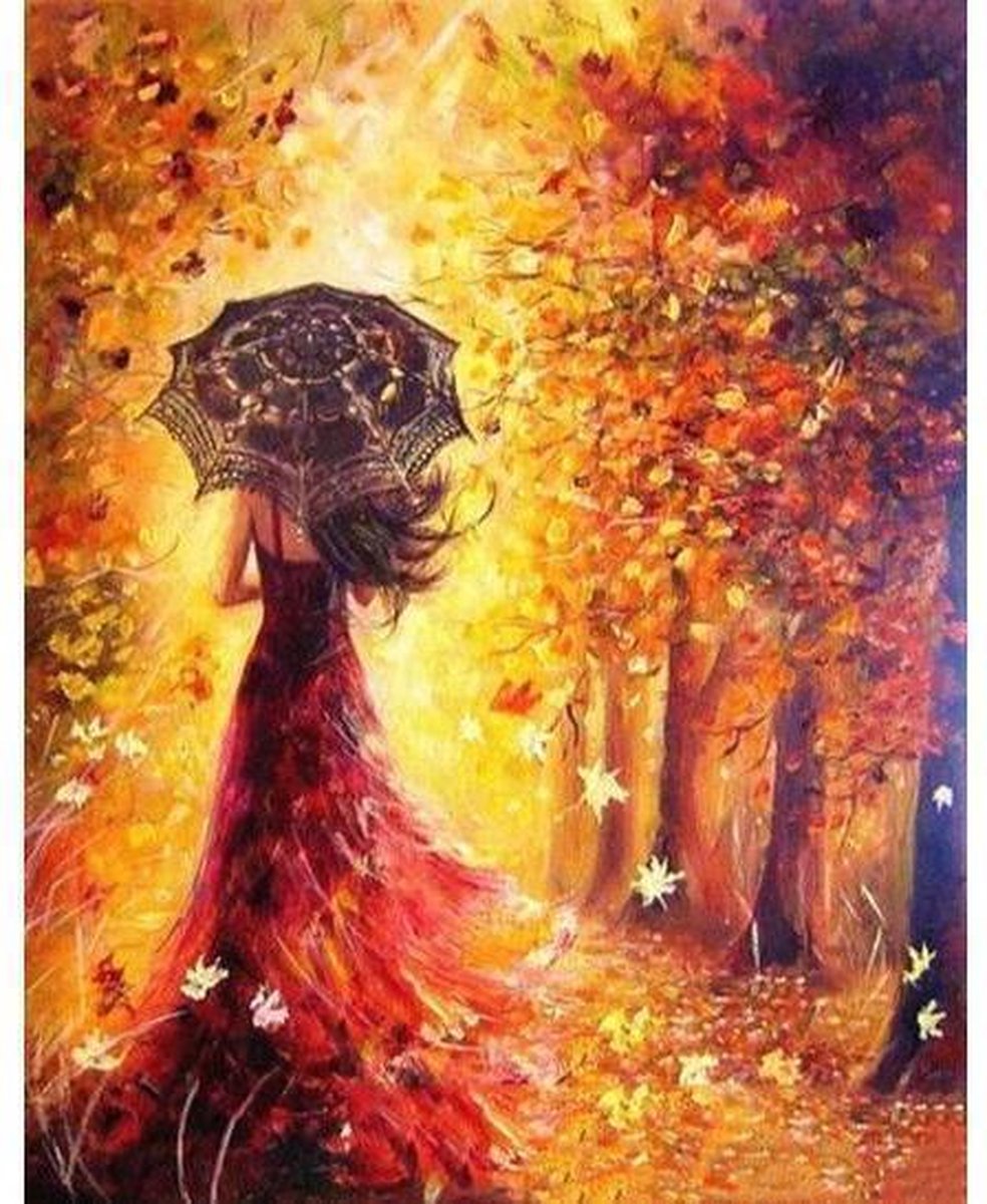 Schilderen op Nummer Vrouw Herfst - 40x50cm - Exclusief Lijst (24 kleurtjes)