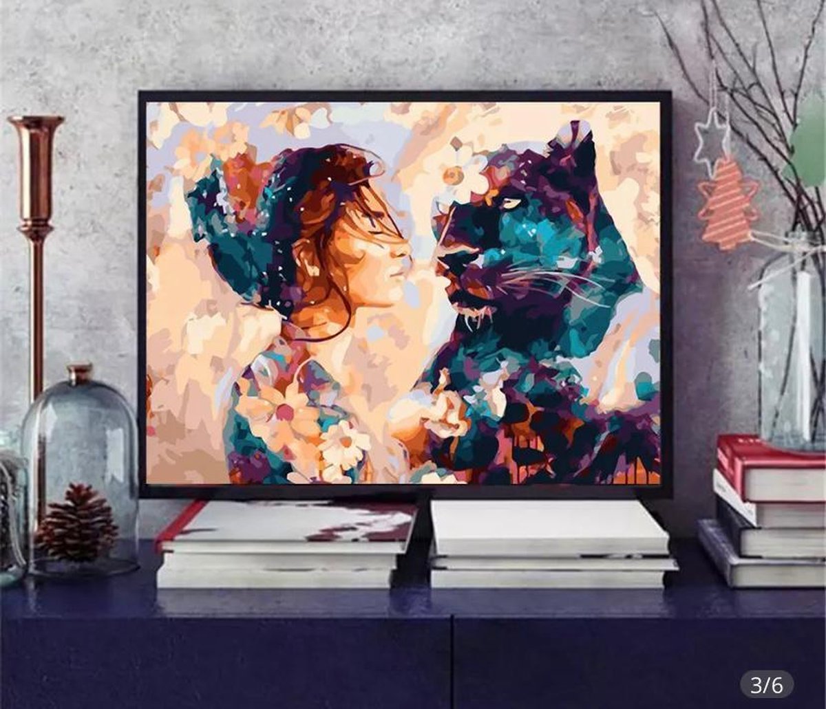 Schilderen op Nummer Vrouw met Luipaard - 40x50cm - Op Lijst Gemonteerd (24 kleurtjes)