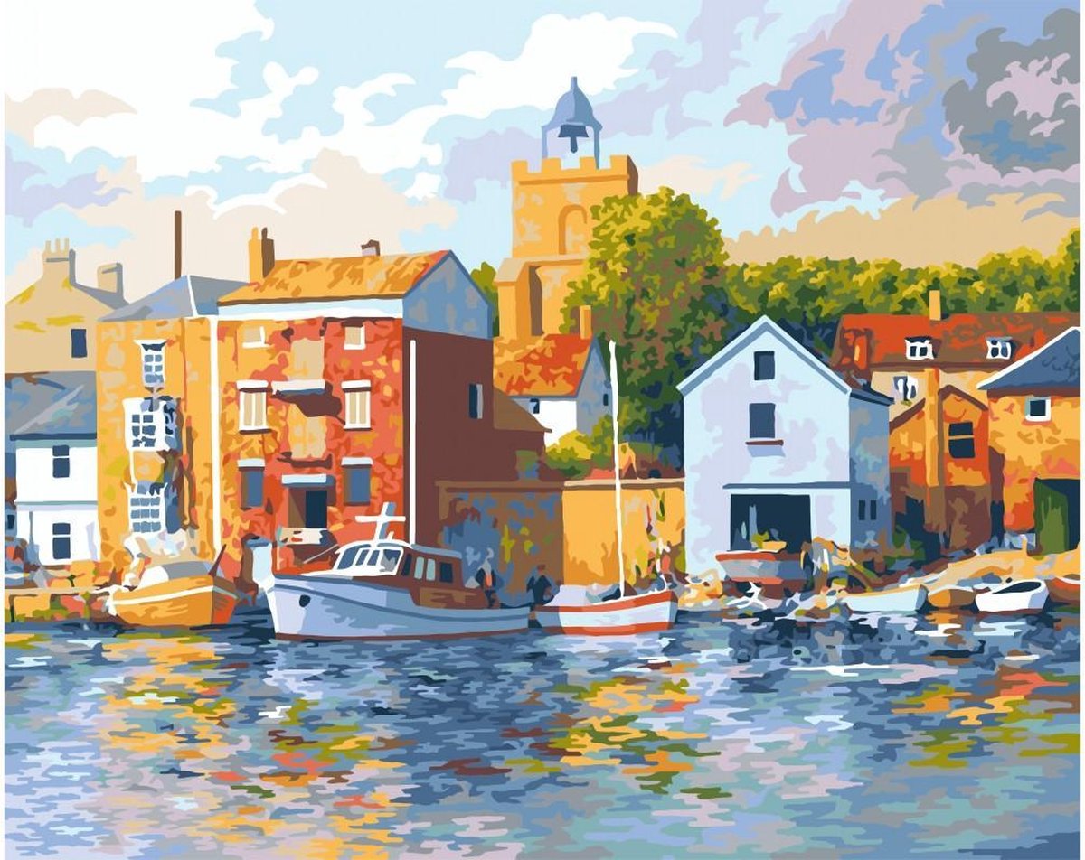 Schilderen op nummer - Wivenhoe UK - Wizardi Afmeting : 40 x 50 cm Opgespannen canvas op board Penselen en voldoende acryl verf (hoeft niet gemengd te worden) Vernis en instructie (nederlands)