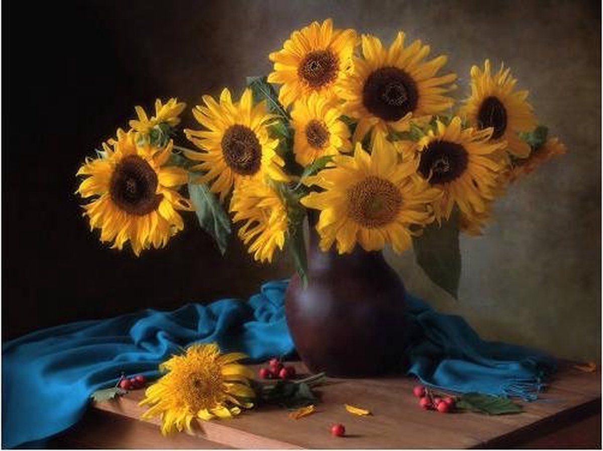 Schilderen op nummer is dé manier om even rustig te ontspannen. Met dit canvasdoek van Zonnebloemen schilder je een ontzettend leuk stuk dat je bijvoorbeeld aan de muur kunt hangen. Moeilijkheidsgraad: 2/5. Zo werkt het Strijk eerst de achterkant van het canvasdoek op een lage stand. Leg een theedoek ertussen voor extra bescherming. Elk vakje op het doek is genummerd. Elk nummer komt overeen met een nummer op de verfpotjes. Kies een nummer waarmee je wilt beginnen. Schilder de vakjes één voor één met de juiste kleur. Zodra je klaar bent (dan kan even duren) kun je het doek inlijsten of opspannen aan een houten frame en aan de muur hangen! Er is geen specifieke volgorde die je moet volgen om deze tekening af te kunnen maken. Dus wees creatief! Zet vooral je favoriete muziek aan en pak een kop thee/bakje koffie. Verpakkingsinhoud Instructies Een set met kwasten Genummerd canvasdoek Genummerde potjes acrylverf Let op: frame niet inbegrepen.