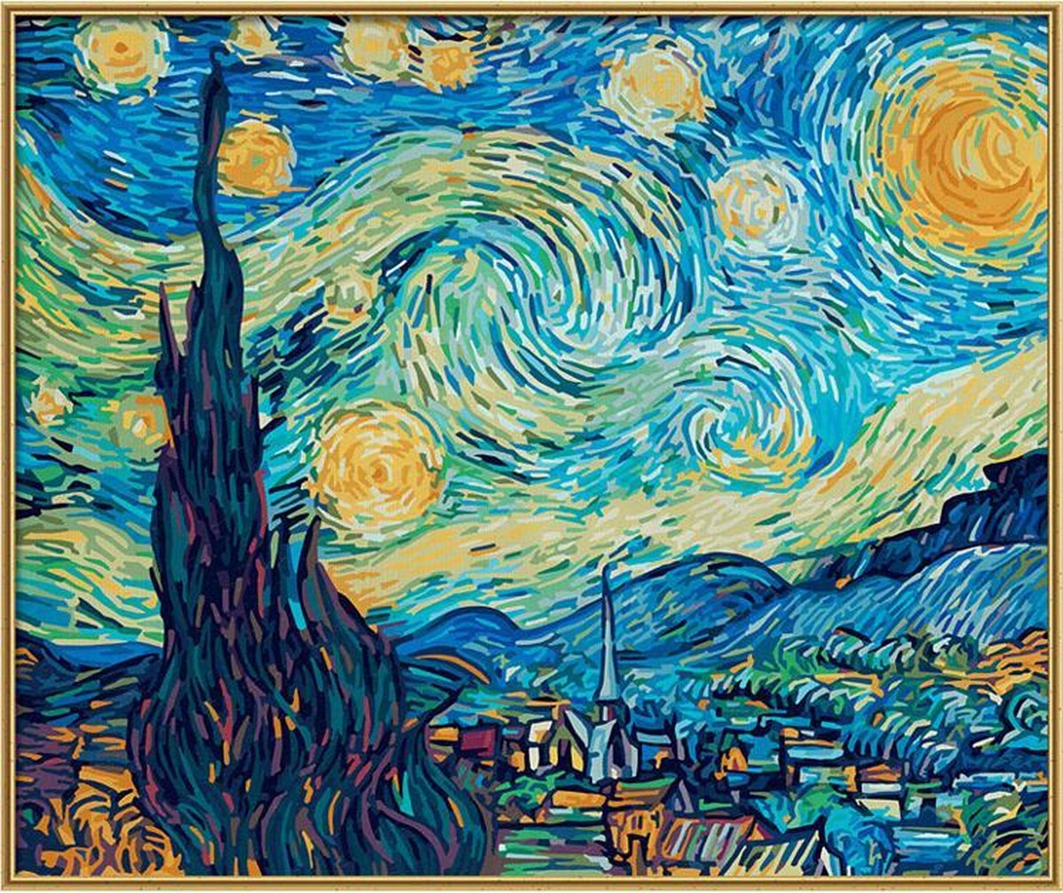 Dit mooie schilderij van de Sterrennacht laat jij tot leven komen, volg de nummers en het doek wordt elke keer mooier! Schilderen op nummers voor volwassenen ken jij vast nog van vroeger. Het ontwerp van het schilderij vind je op een canvasdoek. Het doek staat vol met nummers en elk vakje heeft een nummertje wat overeenkomt met een potje verf. Schilder de vakjes een voor een in met de juiste kleur. Laat jij dit mooie schilderij stralen aan je eigen muur? Het volgende ontvang je bij je bestelling: - een canvas doek - 3 pencelen - verf - een voorbeeld in kleur - een nummer voorbeeld op papier - Handleiding (in Nederlands, Engels en Frans) van Schilderenopnummers.com® Veel schilderplezier toegewenst!