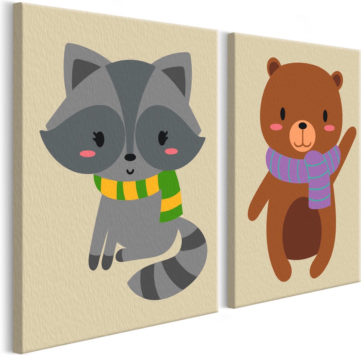 Ontwaak uw creativiteit Als u wilt dat uw kind zijn vrije tijd op een creatieve manier doorbrengt door zijn manuele vaardigheden en zijn talent als kleine artiest te ontwikkelen, dan hebben wij iets voor u! Schilderkit voor kinderen Raccoon & Bear. Als uw kind graag wil tekenen of kleuren zal hij of zij onze schilderijenset Raccoon & Bear zeer op prijs stellen. Het schilderij op zich is een ideaal cadeau-idee om de kamer van het kind te versieren. De schattige kleine dieren en de sprokkjesfiguren wachten op de penseelstreek. Voor kinderen van 7 tot 9 jaar presenteren wij een complete schilderijenset wat vermaakt en ontwikkelt tegelijkertijd. De set bevat: Schemapatroon met gekleurde velden - om uw kind te helpen schilderen Professionele borstel Een set acrylverf in containers, speciaal geselecteerd op het door u gekozen patroon Diagram patroon met gekleurde velden - om uw kind te helpen om te schilderen Het heilzame effect van schilderen Weet u dat schilderen een heilzaam effect
