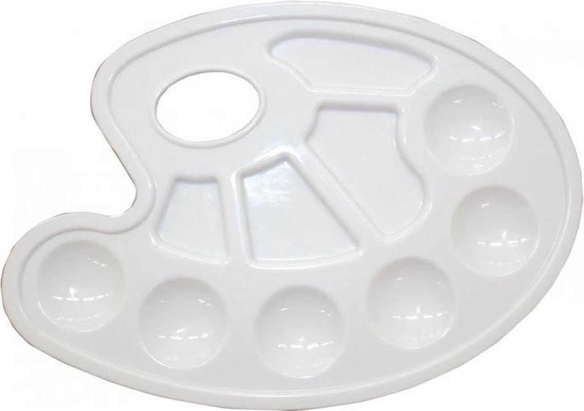 Handig kunststof mengpalet. Geschikt voor wateroplosbare verfsoorten zoals plakkaatverf en acrylverf.