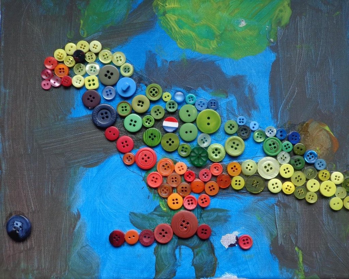 Maak een prachtig schilderij met knopen! Het geeft een heel mooi resultaat. Leeftijd: 6-12 jaar In deze schilderworkshop maak je een mooi schilderij Dit pakket bevat een complete schilderworkshop met verf en knopen. Inhoud van het pakket: canvasbord 24 x 30 cm set kwasten set acrylverf tasje met diverse soorten knopen in verschillende kleuren 4 A4-platen waar je uit kunt kiezen, en met één van deze platen maak je dus het schilderij. Dat is je voorbeeld. Keuze uit 5 prachtige platen in mooie kleuren afgedrukt op A4-formaat: een plaat met bloemenveld, een papegaai-plaat, tijgerplaat, kuikentjesplaat, plaat met vogel in de bloesem een duidelijke beschrijving hoe je stap voor stap dit schilderij kunt maken.