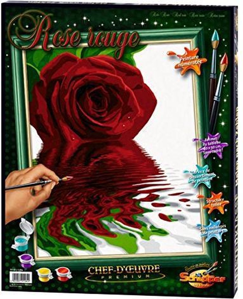 Schipper 609130521002 Rose Rouge Schilderij Schilderen op nummer - schilderen eenvoudig gemaakt! Met de 'Schilderen op nummer' -methode kan iedereen mooie schilderijen maken als alle voorgetekende en genummerde vakjes, die hetzelfde nummer hebben, met de kleuren worden beschilderd. Inhoud: -Linnengestructuurd, stebiel schilderkarton. -In water oplosbare verf (acrylverf). -Fijn schilderpenseel. -Controleblad. -Uitvoerige schilderinstructie. Masterpiece Premium