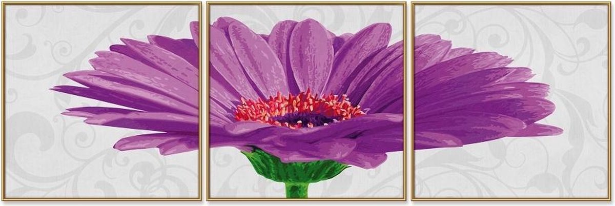 BeschrijvingMet dit Schilderen op Nummer pakket schildert u een afbeelding van een paarse Gebera.Gerbera is een geslacht van planten in de familie Asteraceae. Het geslacht is benoemd naar de Duitse botanicus Traugott Gerber, die een vriend was van Carolus Linnaeus. Er bestaan ongeveer 30 verschillende soorten gerbera's in het wild in Zuid-Amerika, Afrika, Madagaskar en tropisch Azië. Inhoud -Acrylverf -Penseel-Nummerplakkers voor de verfpotjes-Controleblad waarmee de overgeschilderde getallen weer gevonden kunnen worden-Uitvoerige schilderinstructie Wordt geleverd exclusief lijst