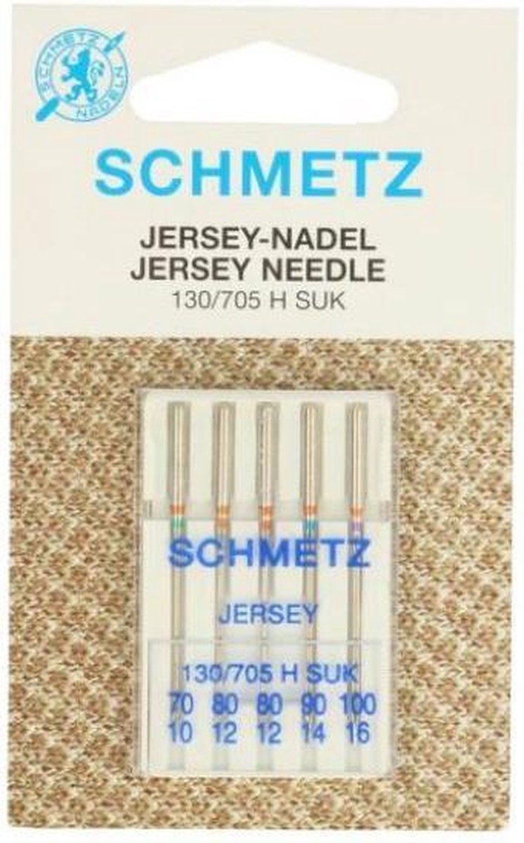 PRODUCT OMSCHRIJVING Als u denkt aan hoogwaardige naalden dan denkt u aan Schmetz! Als ’s werelds toonaangevende producent van uitstekende naaimachinenaalden biedt Schmetz een grote verscheidenheid aan naalden die optimaal werken, ontworpen zijn om lang gebruikt te worden en geschikt zijn voor elk naaiproject! De Schmetz jersey naalden hebben een medium ball-point punt waardoor de naald de vezels niet beschadigt als deze door (gebreide) stof wordt gestoken. Elke verpakking bevat 5 assortiment-naalden 70-100.