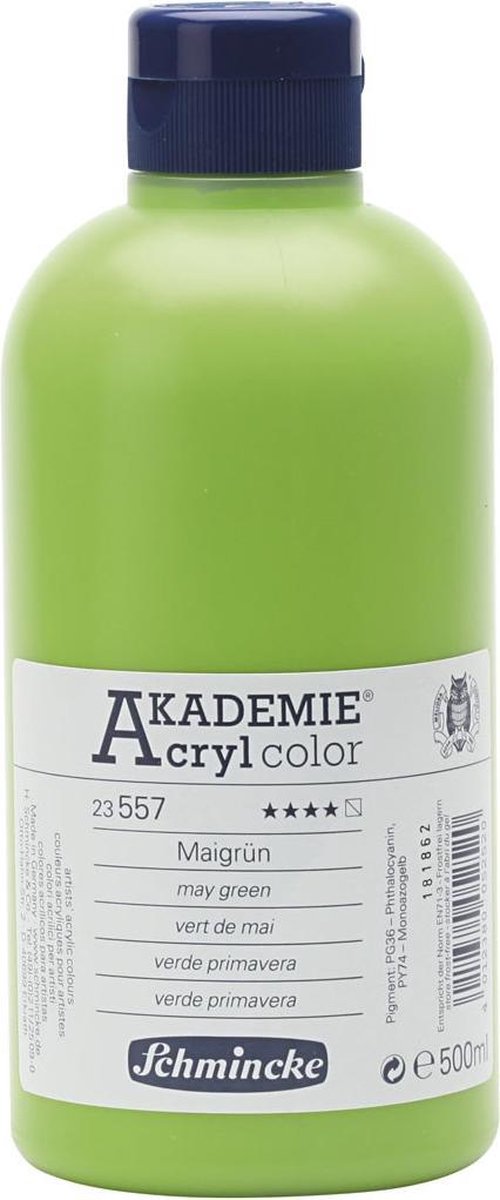 Schmincke AKADEMIE® Acryl color . may green (557). semi-transparant. 500 ml/ 1 fles