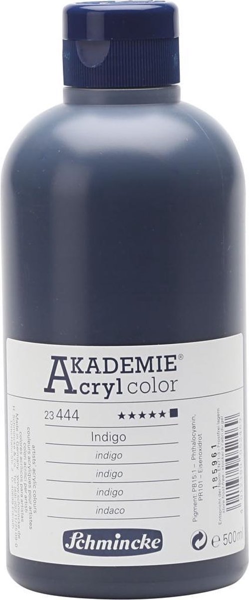 Schmincke AKADEMIE® Acryl color (500 ml) Topkwaliteit acrylverf die niet vervaagt, veel kleurpigmenten bevat en zijn levendige kleuren behoudt na het drogen. Aanbevolen voor zowel de ambitieuze beginner als de veeleisende kunstenaar. Kan verdund worden met water, gemengd worden met andere kleuren uit dezelfde serie en gebruikt worden op de meeste vetvrije oppervlakken.