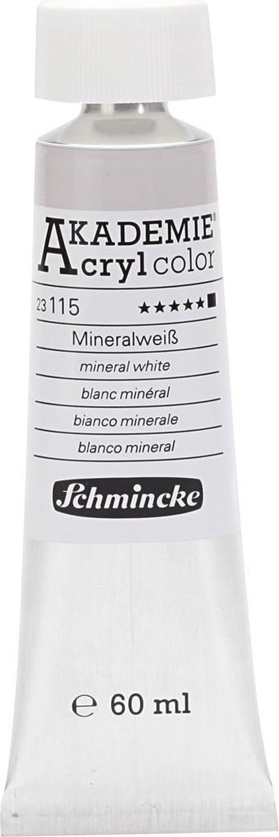 Schmincke AKADEMIE® Acryl color (60 ml) Topkwaliteit acryl verf met een hoog gehalte aan kleurpigment. Behoudt zijn levendige kleuren na het drogen. Aanbevolen voor zowel de ambitieuze beginner als de veeleisende kunstenaar. Kan verdund worden met water en gemengd met andere kleuren van dezelfde serie. Te gebruiken op schone, vetvrije oppervlakken.